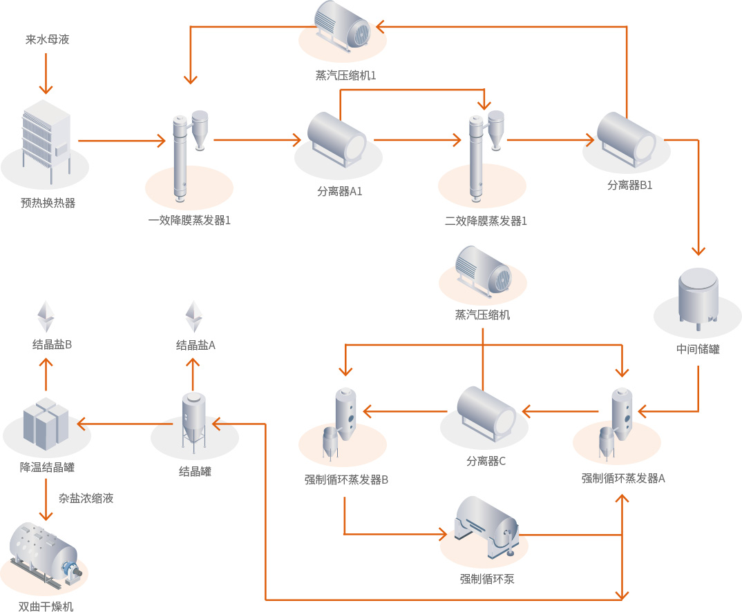 系統(tǒng)采用機(jī)械壓縮蒸發(fā)技術(shù),能夠?qū)崿F(xiàn)高效的溶液濃縮和成分分離,大幅提高了蒸發(fā)效率,減少了能源消耗和產(chǎn)品成本。